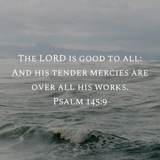 In the roll of a grief wave my tear-blurred eyes were searching Scripture for that “thread” of hope to cling to while riding the wave…when I landed here: Psalm 145:9…